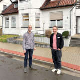Hanno Himmel (links) und Dr. Simon Schloon vor ihrer Praxis in Clenze. Rund 2.300 Patientinnen und Patienten versorgen sie gemeinsam mit ihrem Team. Lieber eine Niederlassung in der Stadt? Denkbar, aber keiner von Beiden will das.